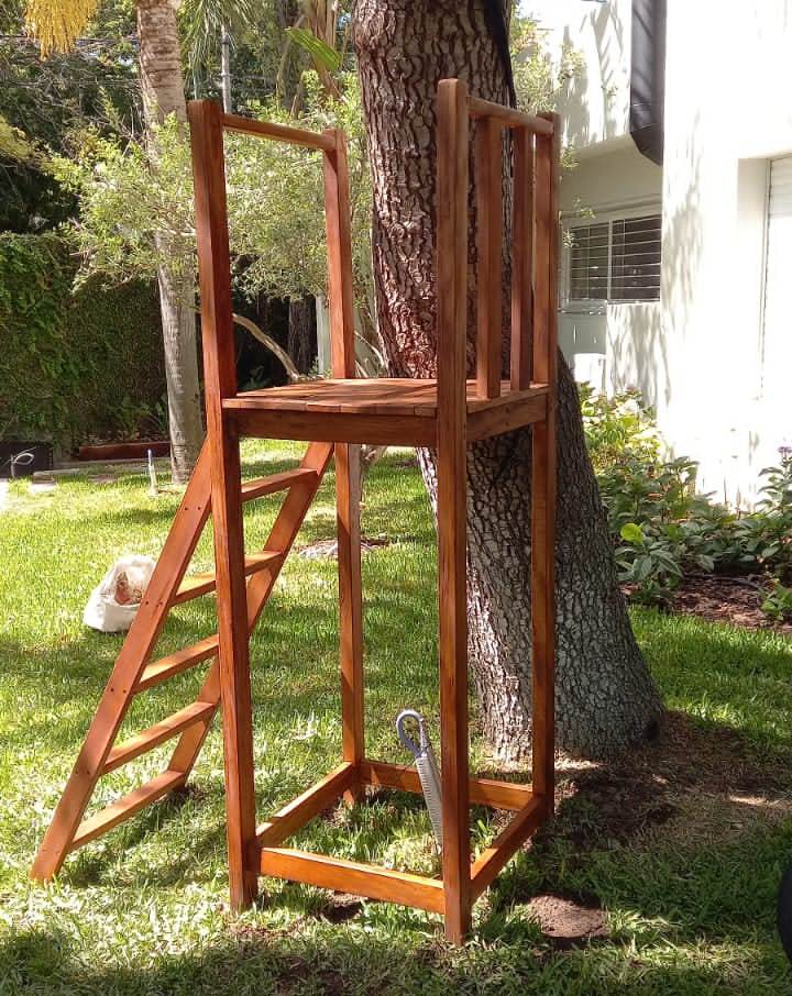 -Plataforma realizada en madera dura de h:1.50m. x 0.60m. x 0.60m.