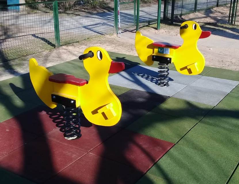 -Pato / caballo con resorte -Agarraderas metálicas con manoplas de goma